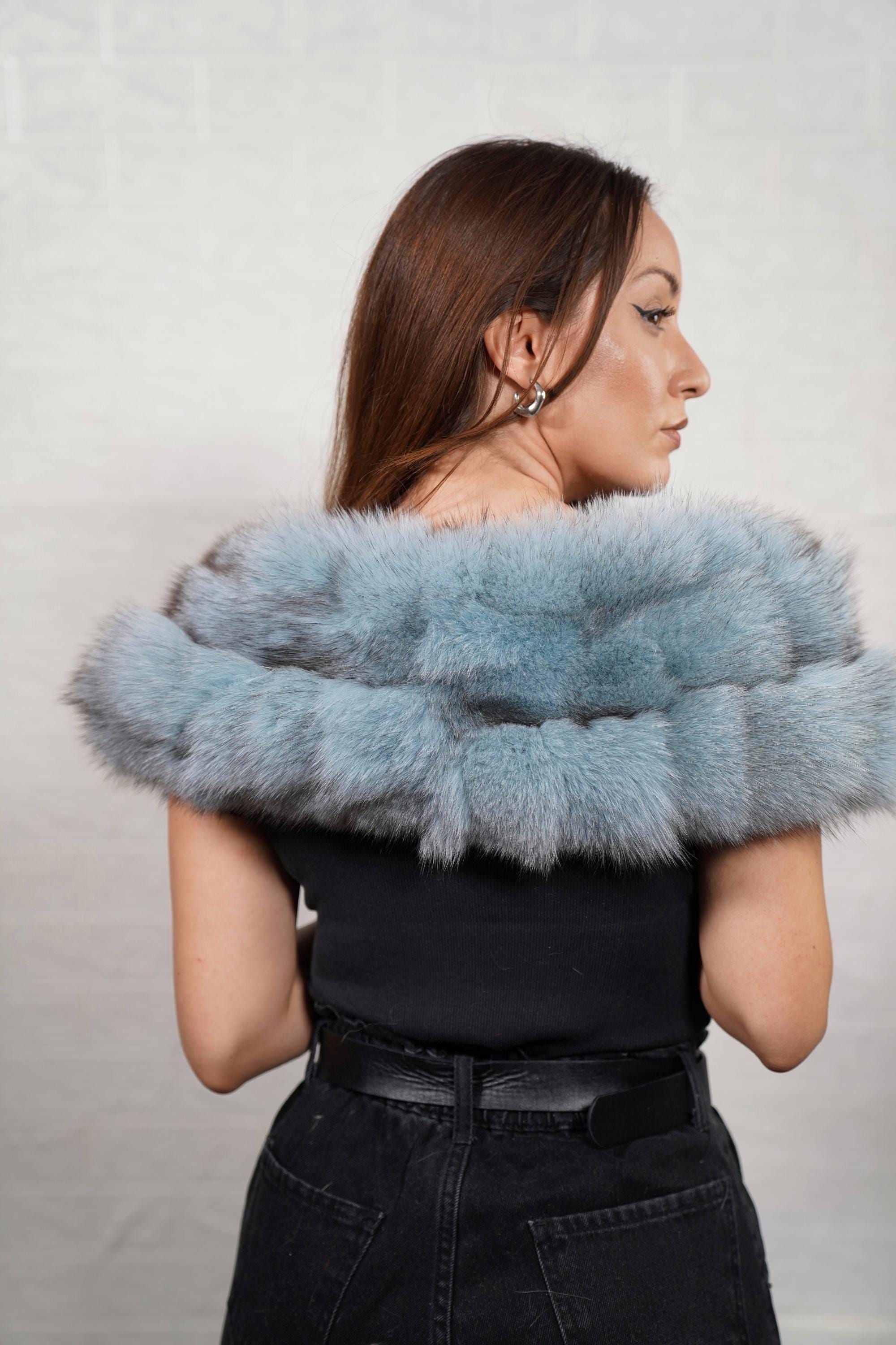 Fox fur collar scarf light blue