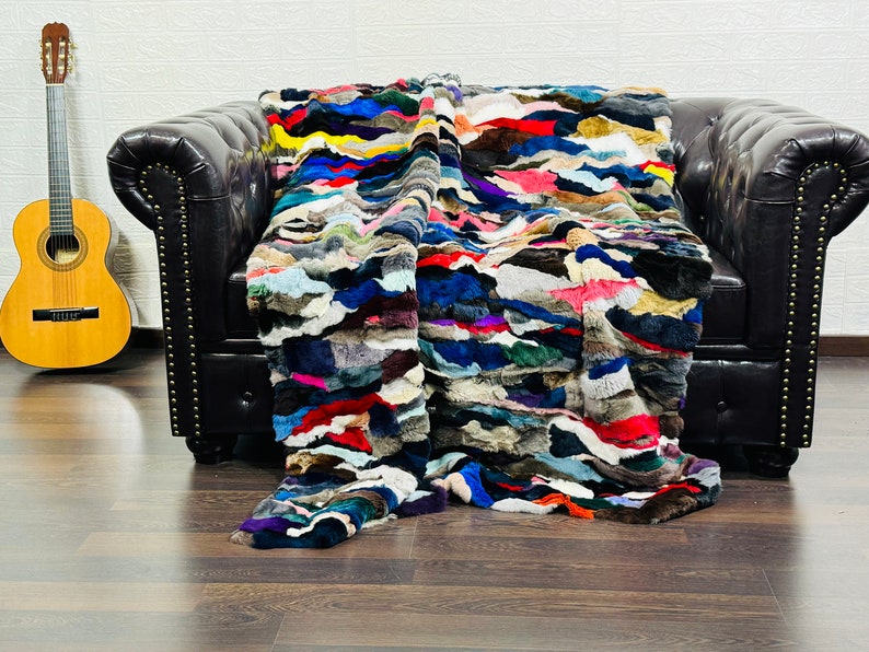 MULTICOLOR DOUBLE SIDED Rex Rabbit Fur Blanket • Luxury Fur Blanket Throw • Fur Bedspread • Home Warmer Blanket • Perfect for your Living Room