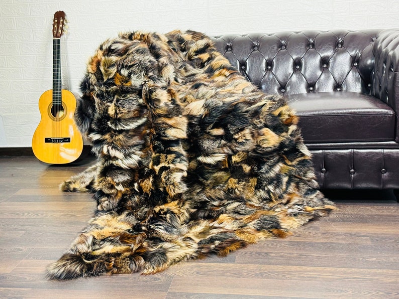 Handmade Real DOUBLE SIDED Mathilde Fox Fur Blanket that can be used as a throw as well. Perfect for Bedspread or Sofa Cover.